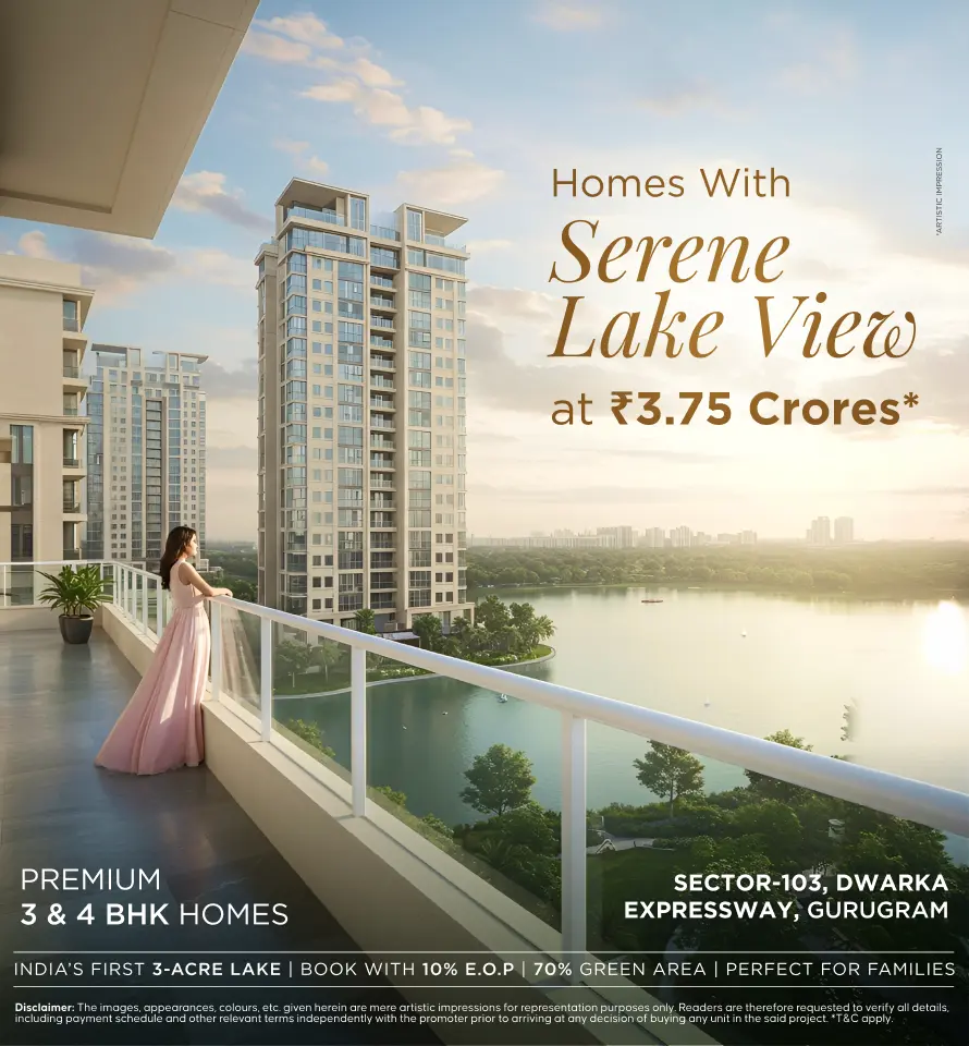 All information, images and visuals, designs and drawings, plans or sketches are only representative, an architect’s impression or artistic renderings and not to scale. Interior and Accessories shown in the Show Apartment are illustrative and indicative only. Areas and land outside the periphery/ boundary of the Project are indicative and no right is created thereon. Nothing contained herein intends to constitute a legal offer and does not form part of any legally binding agreement. Recipients/ viewers are advised to exercise their discretion in relying on the information provided and are requested to verify all the details, specifications, including common areas, landscapes, amenities and facilities, services, payment plans and other relevant terms independently with the Promoter, have thorough understanding of the same and take appropriate advice prior to concluding any decision for buying in the Project. Registration No.Coming Soon available at . For more information please visit - Project address - Sector-103 Dwarka Expressway, Gurgaon. Terms and conditions apply.